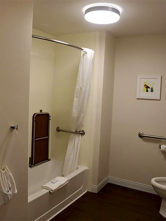 Any corresponding photo may not reflect the specific accessible room type or room feature. This mobility and hearing accessible, non-smoking room features one king sized bed , and an accessible 3x3 transfer shower. The room also has a visual alarm and notification devices for the doorbell or door knock and incoming phone calls. The room features comfortable soft seating, microwave, refrigerator, a HDTV, and easy to operate alarm clock/radio. The free high-speed internet access will help you stay connected while on the road. If you prefer not to work at the desk, you can use the convenient lapdesk instead. You'll also enjoy the convenience of having a coffee maker with tea service and iron/ironing board in your room.