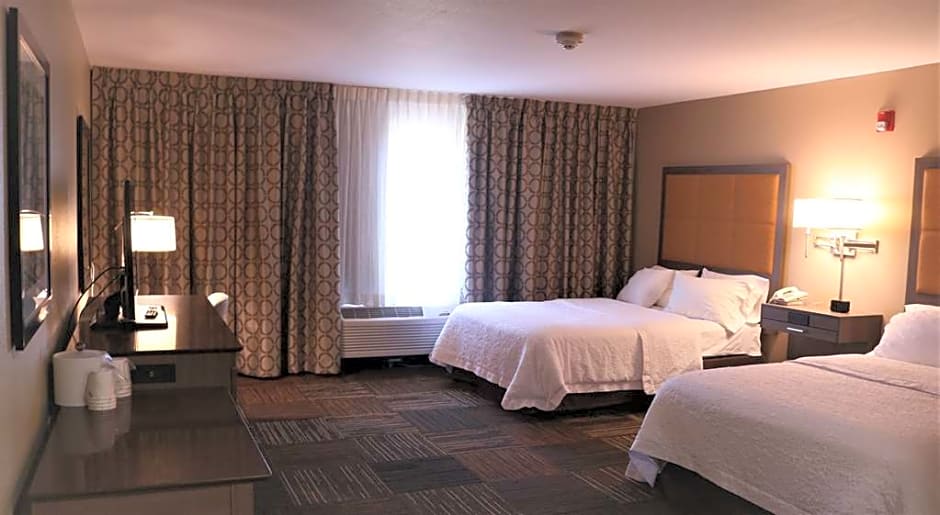Any corresponding photo may not reflect the specific accessible room type or room feature. This mobility and hearing accessible, non-smoking room features two queen sized beds, and an accessible 3x3 transfer shower. The room also has a visual alarm and notification devices for the doorbell or door knock and incoming phone calls. The room features comfortable soft seating, microwave, refrigerator, a HDTV, and easy to operate alarm clock/radio. The free high-speed internet access will help you stay connected while on the road. If you prefer not to work at the desk, you can use the convenient lapdesk instead. You'll also enjoy the convenience of having a coffee maker with tea service and iron/ironing board in your room.